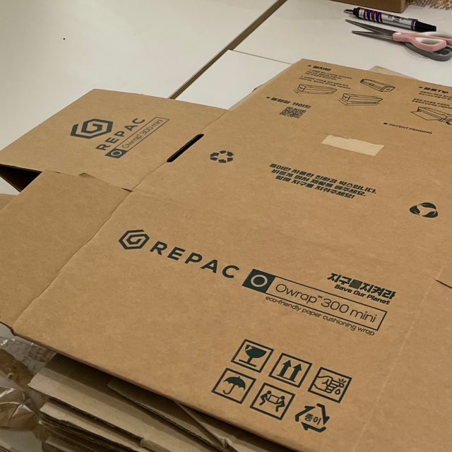특허 받은 종이 완충재 Owrap이 있습니다.